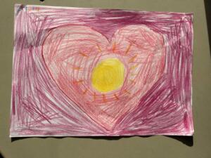 A year one student painted how QiGong makes them feel (right): "I felt that my heart was very warm."